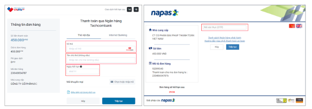 Thanh toán qua “Thẻ nội địa và tài khoản ngân hàng”